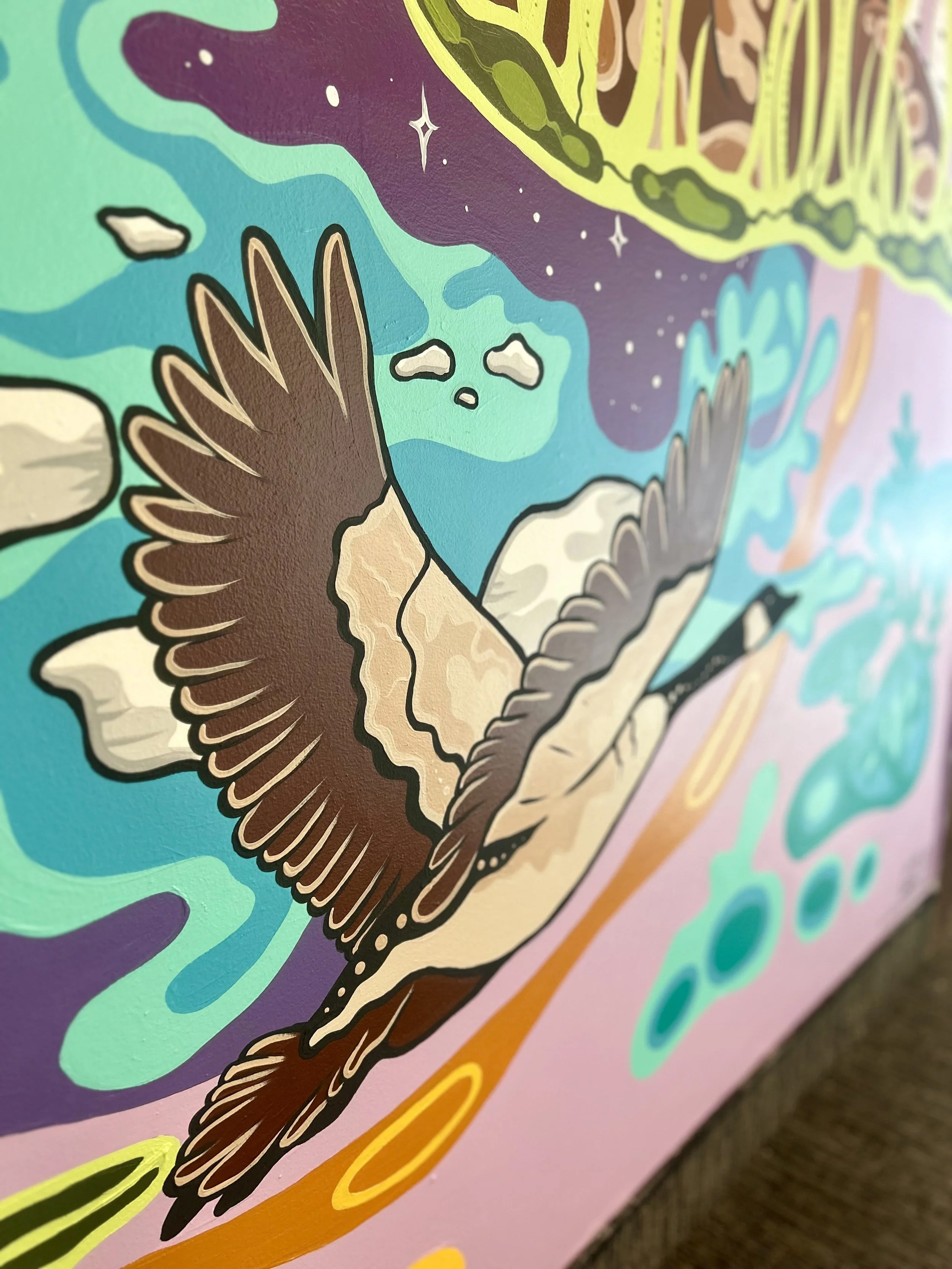 This mural was aimed at representing a cyclical nature of all creation, and the beauty of our animal relatives. This piece is accessible to the public, and will remain permanently installed at Ottawa’s Ikea location (right off the escalators on the 2nd floor).