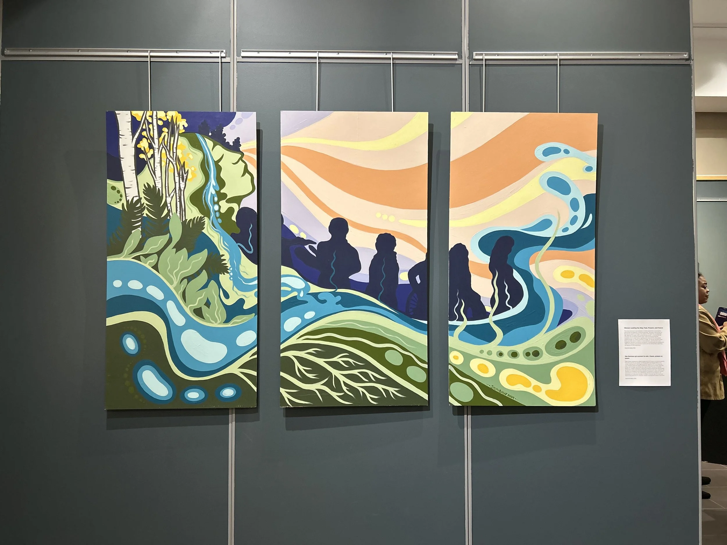 Three murals for CISSSO; one at the Gatineau Hospital, the second at Pierre Janet Mental Health Hospital, and the third for the headquarters office. All murals are designed with the intention of representing the calming and healing experience of being on the water in mind.